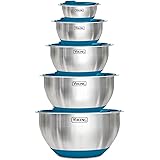 VIKING Mixing Bowls Set, 10 Piece Stainless Steel Kitchen Cookware, Non-Slip Silicone Base, Includes Tight Fit Lids, Dishwasher Safe, Blue
