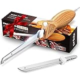 Prikoi Electric Knife - Easy-Slice Serrated Edge Blades Carving Set for Meat, Bread, Turkey, Ribs, Fillet, DIY, Ergonomic Handle + 2 Blades for Raw & Cooked Food(Faux Wood)